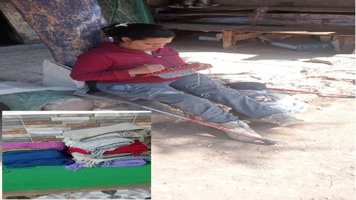 Un accord a été conclu avec elle pour que les matières premières et les outils nécessaires à la fabrication de produits en laine soient distribués aux points de vente. Elle a également bénéficié d'une aide pour commercialiser ses produits dans le village. Elle a reçu 7 500 livres égyptiennes et nous l'avons aidée à acheter du matériel et des outils. Aujourd'hui, elle travaille bien et gagne de l'argent, ce qui l'aide dans sa vie.