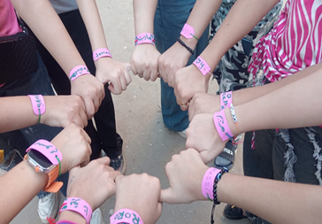 Les 8 moniteurs-trices sont de très jeunes gens qui travaillent bénévolement et qui s’organisent alors pour répartir les enfants en 6 groupes d’environ 10 enfants chacun et les placent ensuite sur les bords de la rue.